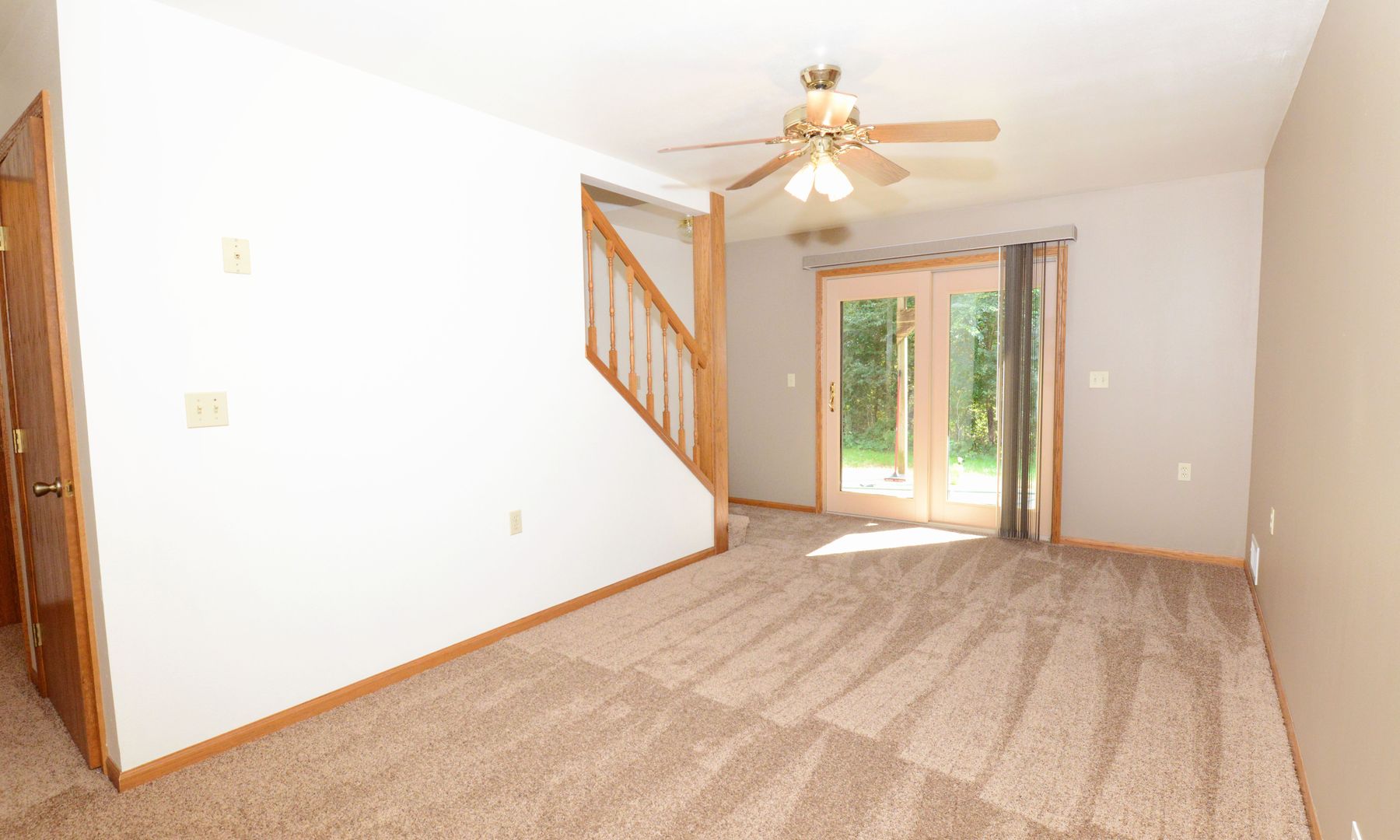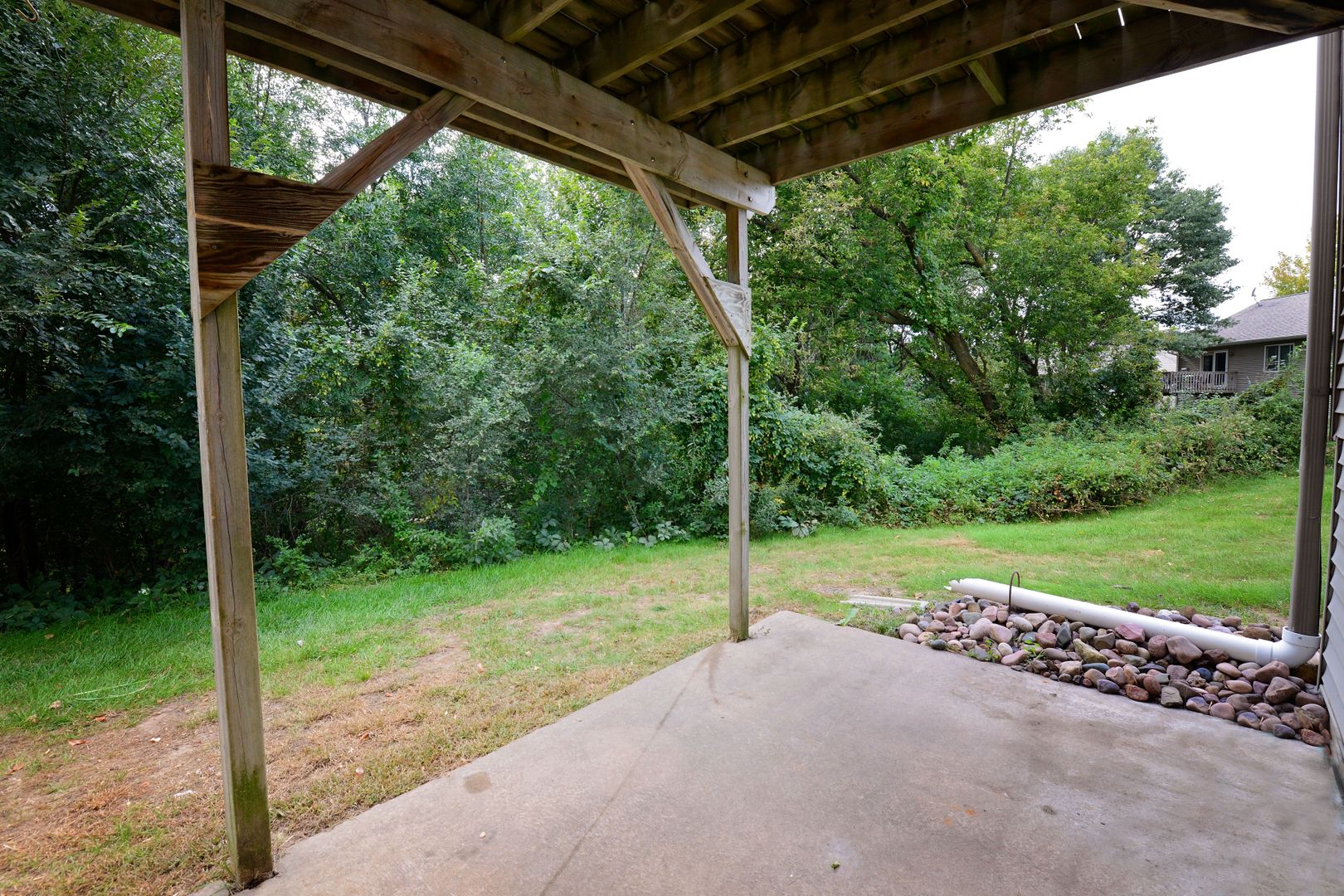 Patio off of the lower living room and a deck off of the upper living room.